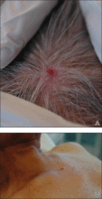 Adenoid cystic carcinoma (ACC) is the second most common malignant neoplasm of the major and minor salivary glands.1 The disease course generally is characterized by slow yet relentless progression with a poor long-term prognosis. The presence of distant metastasis heralds a poor prognosis in patients with ACC of the head and neck, with a median survival of 4.3 to 7.3 months.2 Twenty-five percent to 50% of ACCs of the salivary glands result in distant metastasis, primarily involving the lungs, bones,3-5 liver, and brain.4,5 Cutaneous metastasis of ACCs of the salivary glands is rare and usually is limited to the head and neck regions. We describe a case of early cutaneous metastasis of ACC on the head and neck, driving the identification of systemic diffusion of the neoplasm. Our case underscores the importance of conducting a complete skin examination in oncologic patients, especially focusing on cutaneous and subcutaneous nodules and papules that are eruptive or show rapid development.