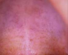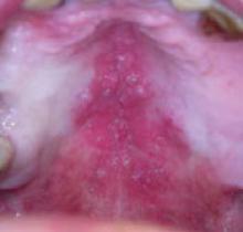 Typically, you’ll make the diagnosis of nicotine stomatitis clinically, since few lesions resemble its appearance.1 The atypical nature of our patient’s lesion, however, is what prompted a biopsy. You may also do a biopsy if there is any suspicion of cancer or if a lesion is still present after the patient stops smoking.