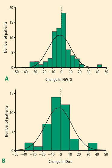 Our own analysis of pulmonary function changes in patients treated with SBRT at Cleveland Clinic demonstrated that while there was no significant change in average baseline, pulmonary function in almost 10% of patients met criteria for a grade 3 pulmonary toxicity. A similar number of patients had a proportional improvement in pulmonary function, however. Given a nearly comparable distribution of pulmonary function changes in both directions with no significant deviation from baseline in aggregate, most of these fluctuations may be related to changes in the patient’s underlying comorbidities rather than effects of treatment.