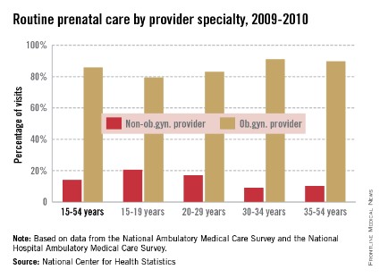 Overall, women aged 15-54 years saw a non-ob.gyn. provider for 14.1% of their routine prenatal care visits, according to data from the National Ambulatory Medical Care Survey and the National Hospital Ambulatory Medical Care Survey.